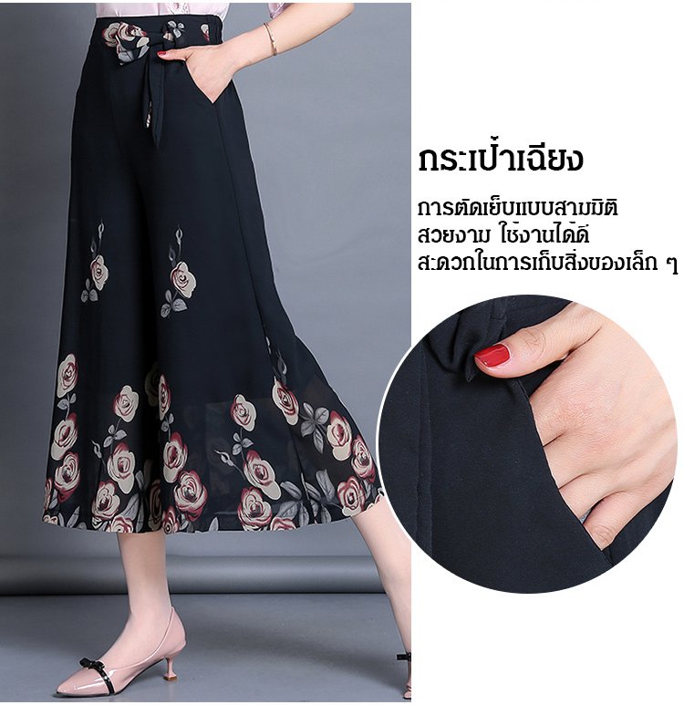 กางเกงคูลอตผ้าชีฟองผู้หญิง พิมพ์ลายดอกไม้